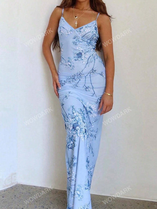 Women's Floral Print Sleeveless Spaghetti Strap Dress For Summer