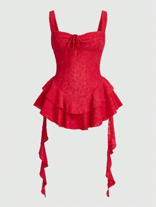 Sweetina Y2k Spring Break Summer Outfits See-Through Hollow Out Cami Long Ruffle White Mini Dress