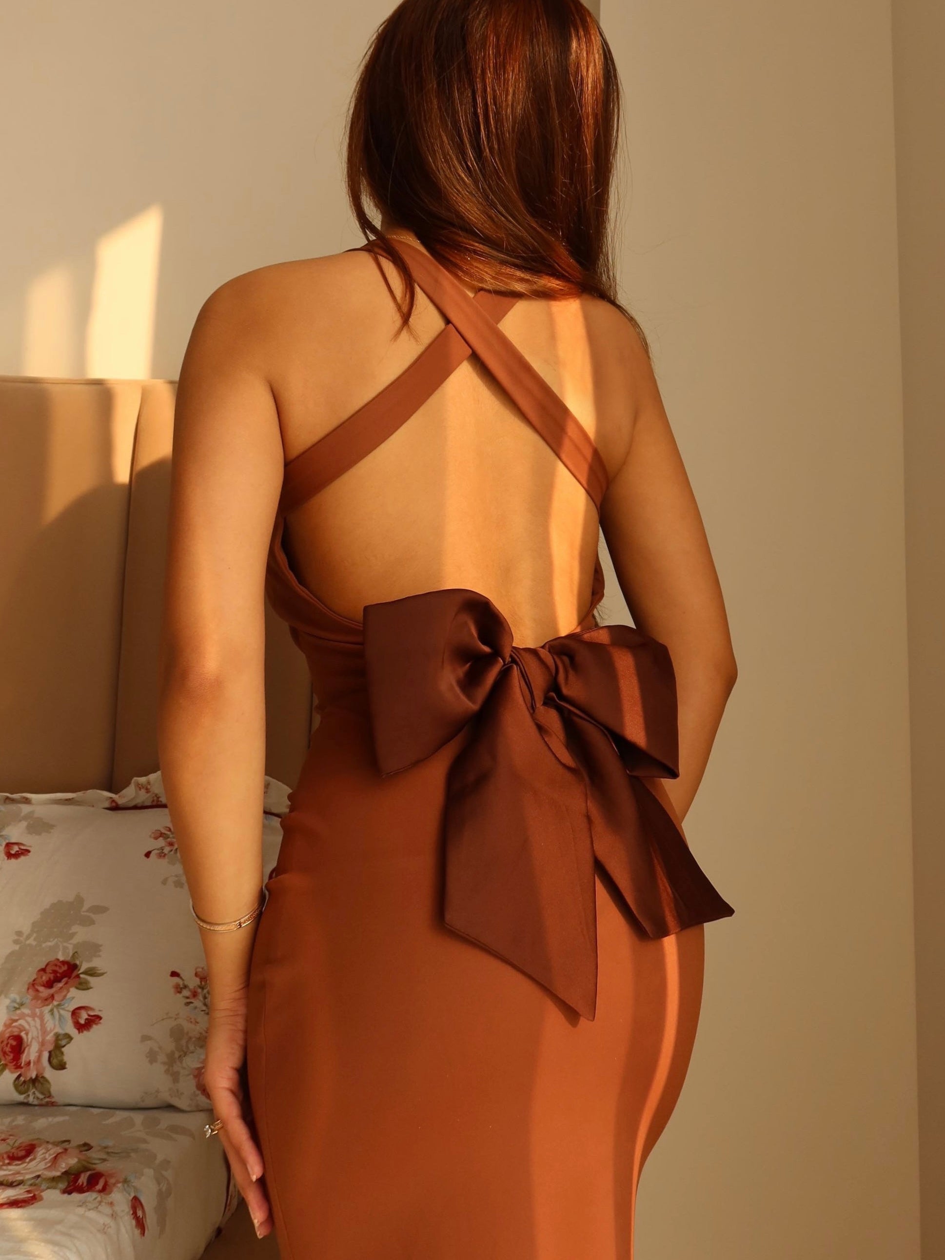 Solid Color Bow Backless Dress